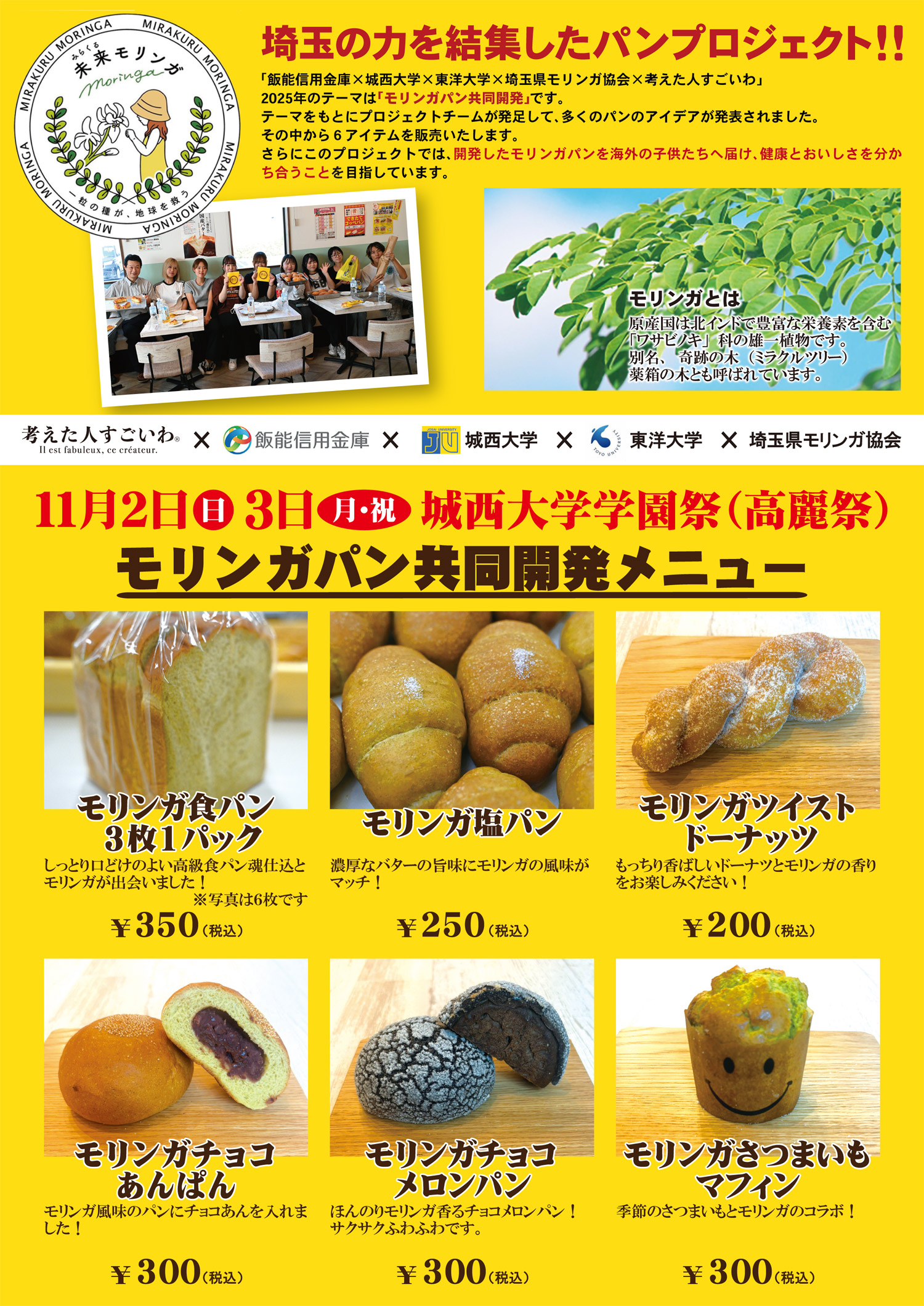 学生たちの想いと職人の技術が詰まったモリンガパンを、ぜひ高麗祭でお楽しみください。