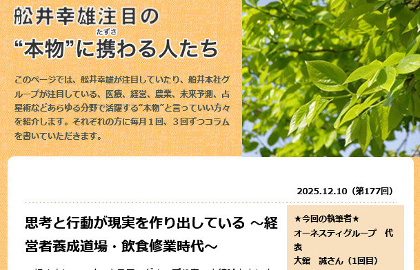 【お知らせ】舩井幸雄注目の「本物に携わる人たち」に掲載されました